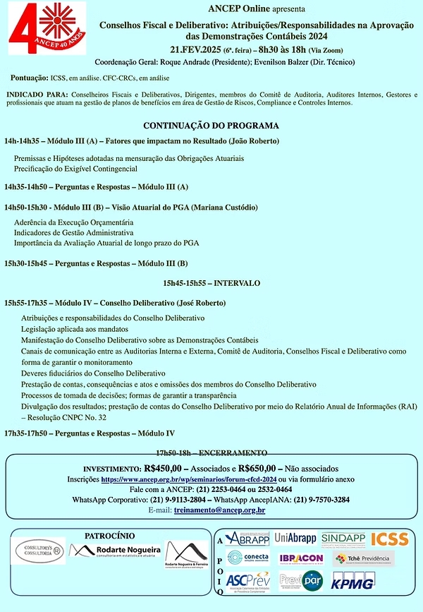 ANCEP - Conselhos Fiscal e Deliberativo: Atribuições e Responsabilidades na aprovação das Demonstrações Contábeis de 2024 (21 FEV)