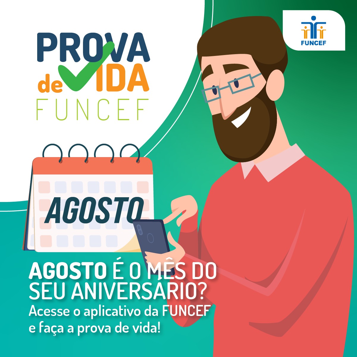 Os aposentados nascidos em agosto já podem fazer a prova de vida no aplicativo da FUNCEF a partir deste domingo (1º/8). Pensionistas devem considerar a data de nascimento do titular do plano.
