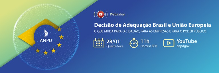 A Agência Nacional de Proteção de Dados (ANPD) realizará na manhã desta quarta-feira (28/01), às 11h, webinário sobre à Decisão de Adequação Mútua entre o Brasil e a União Europeia. O evento será transmitido ao vivo pelo canal da ANPD no YouTube.