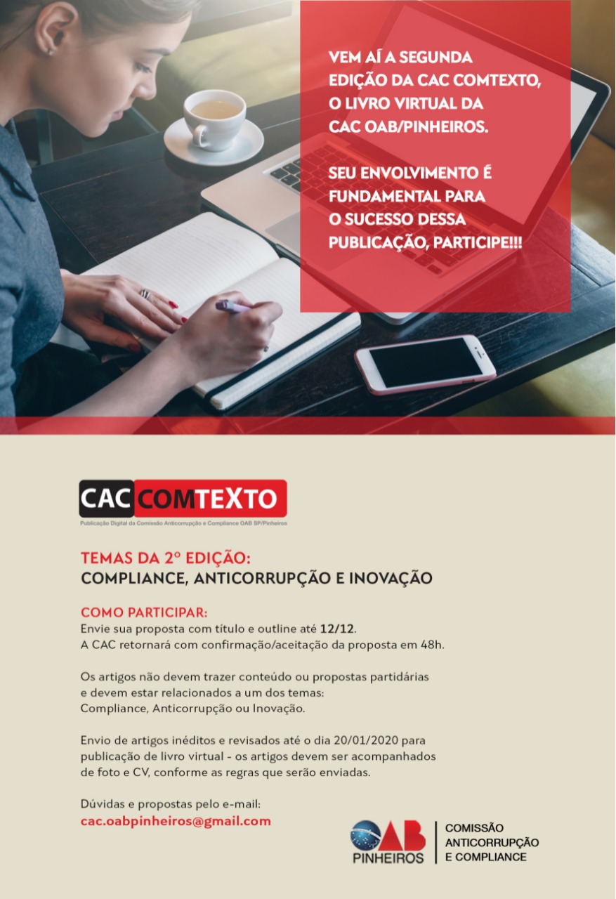 Convite 2ª Edição CACCOMTEXTO - Publicação Digital da Comissão Anticorrupção e Compliance OAB/SP - Pinheiros