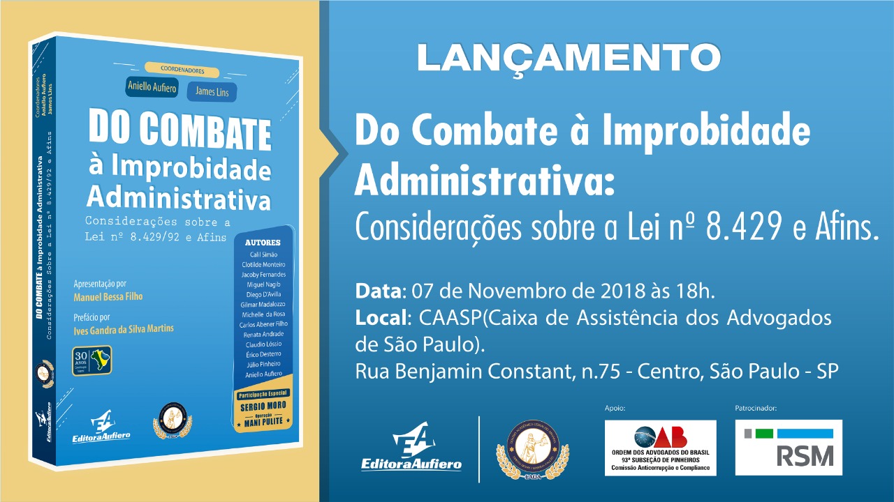 Convite lançamento do livro: "Do Combate à Improbidade Administrativa"