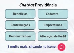 O chatbot pode ser utilizado no autoatendimento da previdência, após realizar o login. Basta clicar no balão de diálogo, indicado na imagem acima, que fica no canto inferior direito da tela.