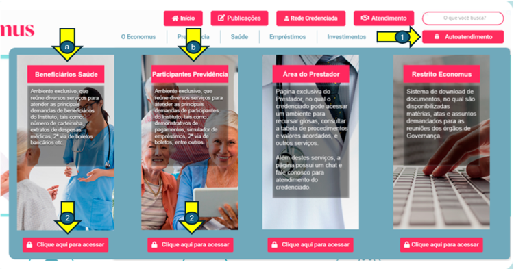 Clique em “Autoatendimento”, no canto superior direito da sua tela.