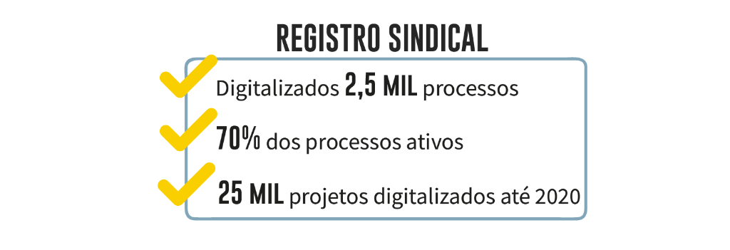 Também será lançada uma ferramenta eletrônica para solicitar registro sindical, bem como obter outros serviços e documentos sobre as entidades representativas. A digitalização aliada ao peticionamento eletrônico permitirá transparência total na concessão dos registros. Além disso, confere segurança jurídica, celeridade e economia.