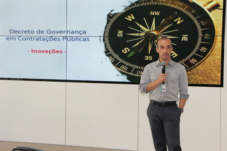 Apresentação do secretário adjunto de Gestão do Ministério da Economia, Renato Fenili, durante Workshop para discutir as contratações públicas