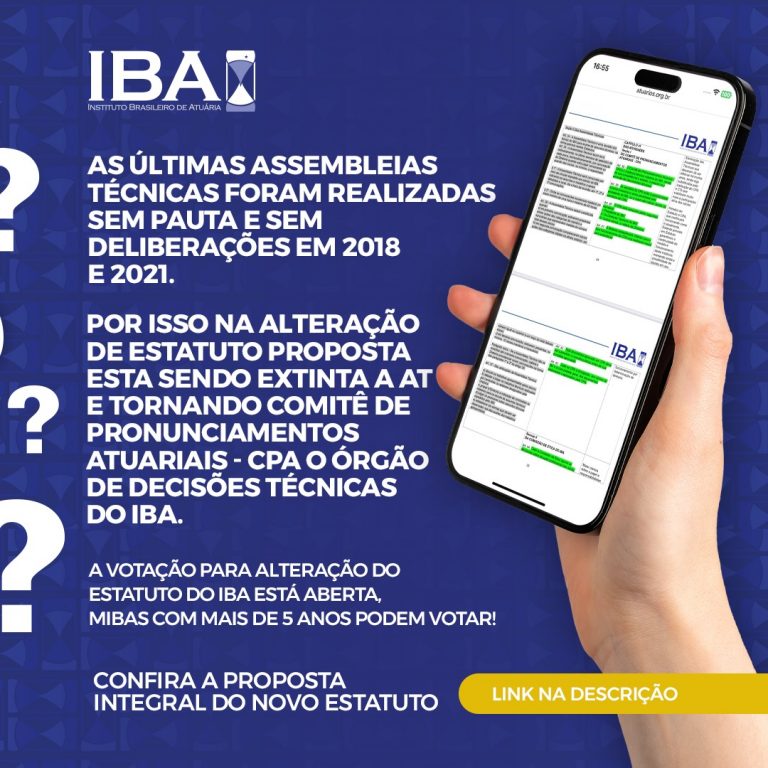 Por isso na alteração de estatuto proposta esta sendo extinta a AT e tornando Comitê de Pronunciamentos Atuariais – CPA o órgão de decisões técnicas do IBA.