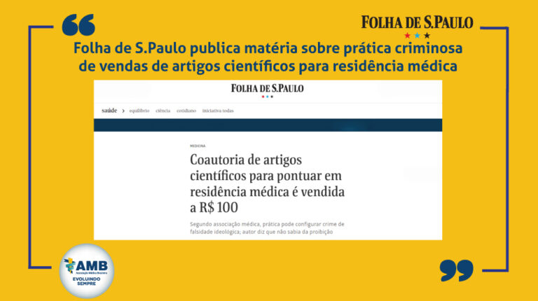 Folha de S.Paulo publica matéria sobre prática criminosa de vendas de artigos científicos para residência médica