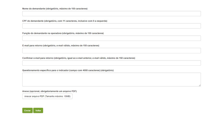 3. Para realizar o questionamento, deverão ser preenchidas as informações indicadas abaixo: