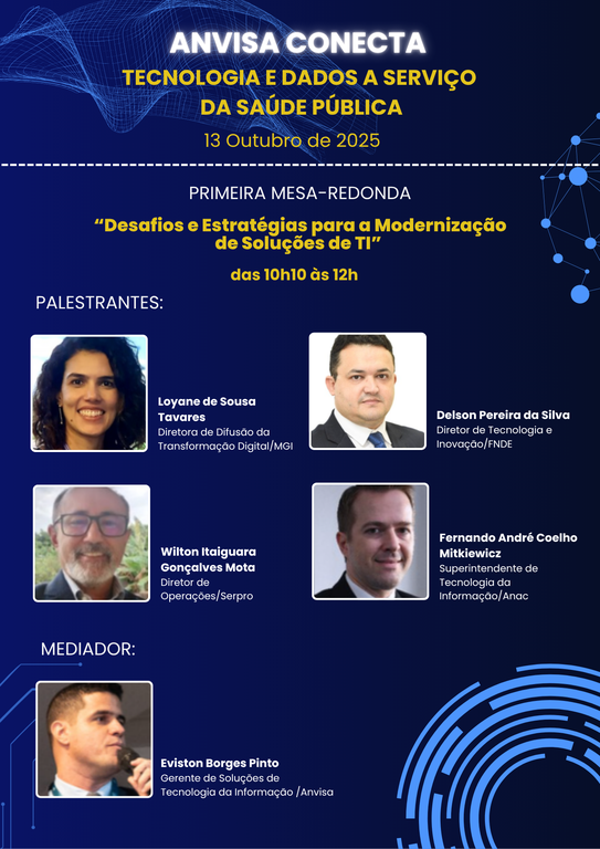 Na ocasião, especialistas e gestores públicos estarão reunidos para discutir como a tecnologia pode ampliar a eficiência, a transparência e a segurança das ações da Anvisa, com foco na construção de soluções que fortaleçam o cuidado com a saúde da população brasileira.
