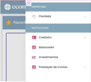 A primeira opção do menu será sempre o nome do seu plano de previdência ativo.
