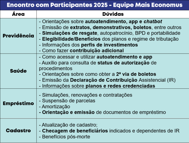 Encontro com Participantes 2025: equipe ‘Mais Economus’ estará presente para tirar dúvidas