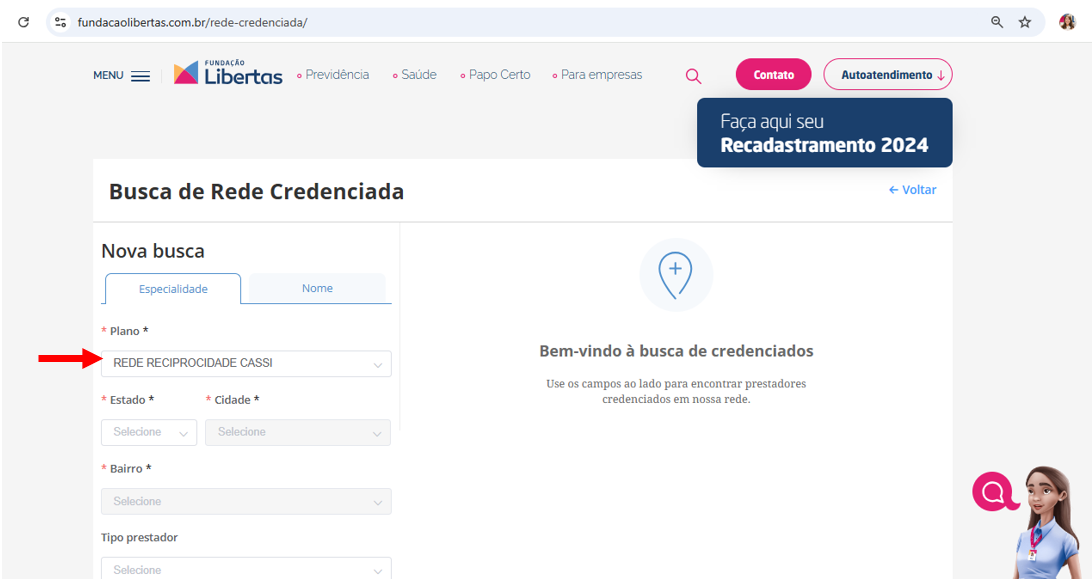 - Selecione o plano: REDE DE RECIPROCIDADE CASSI
