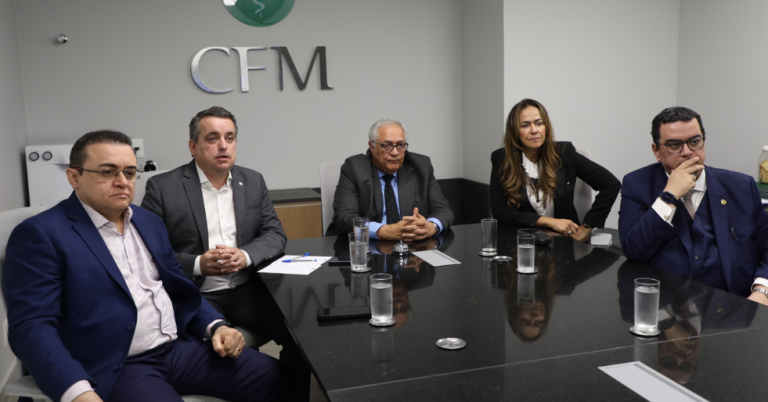 Coletiva de imprensa do CFM sobre violência contra médico: Jeancarlo Cavalcante (3º vice-presidente); Estevam Rivello (2º Secretário); Emmanuel Fortes (1º vice-presidente); Rosylane Rocha (2ª vice-presidente) e Francisco Cardoso (vice-corregedor)