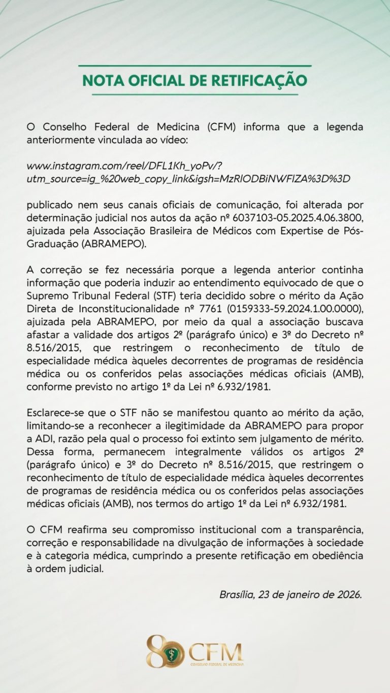 Fonte: Portal CFM, em 23.01.2026.