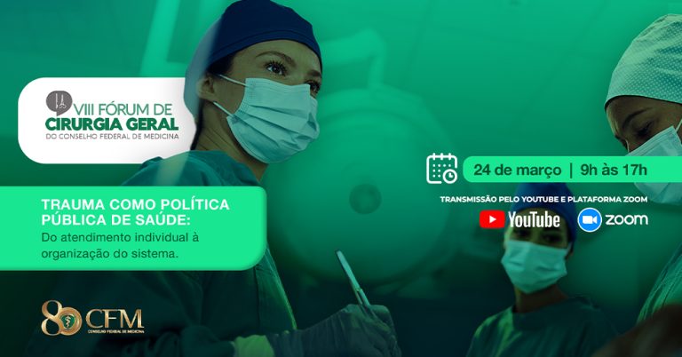 “Trauma como política de saúde pública: do atendimento individual à organização do sistema” será o tema central do VIII Fórum de Cirurgia Geral do CFM, marcado para esta terça-feira, 24 de março. O evento reunirá cirurgiões de todo o país para debater temas como a formação do especialista, o financiamento do Sistema Único de Saúde, mortes evitáveis e segurança do paciente.