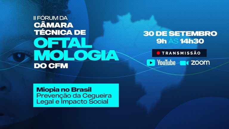 De acordo com o Conselho Brasileiro de Oftalmologia (CBO), o Brasil tem 59 milhões míopes, o que equivale a 27,6% da população. O debate dessa situação será realizado no II Fórum da Câmara Técnica de Oftalmologia do CFM, que terá como tempo central “Miopia no Brasil: Prevenção da Cegueira Legal e Impacto Social”. O evento será realizado na próxima terça-feira (30), das 9h às 14h30, no formato virtual, por meio da plataforma Zoom (com direito a certificado) e com transmissão ao vivo no canal do CFM no YouTube.