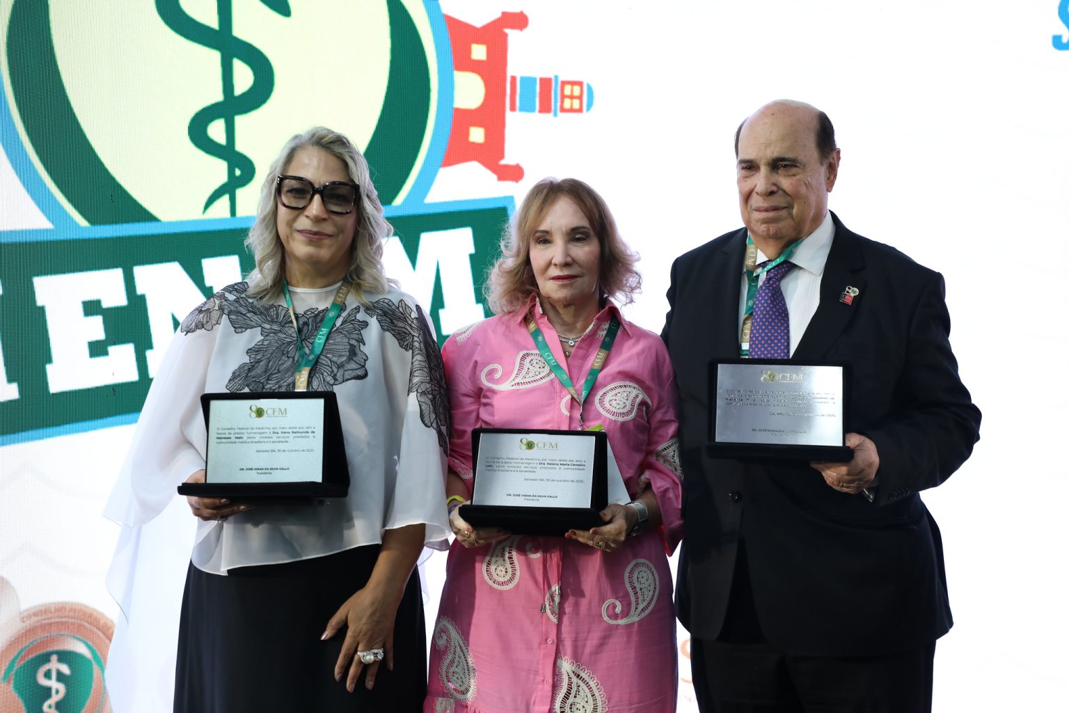 Homenagens – Durante a cerimônia, o CFM prestou homenagens a três médicos que se destacaram pela trajetória exemplar em defesa da ética e da medicina brasileira: Helena Maria Carneiro Leão, João Gonçalves de Medeiros Filho e Ivana Raimunda de Menezes Melo. A entrega das placas foi conduzida pelos conselheiros federais Eduardo Jorge da Fonseca Lima, Bruno Leandro de Souza e Alexandre Rodrigues.