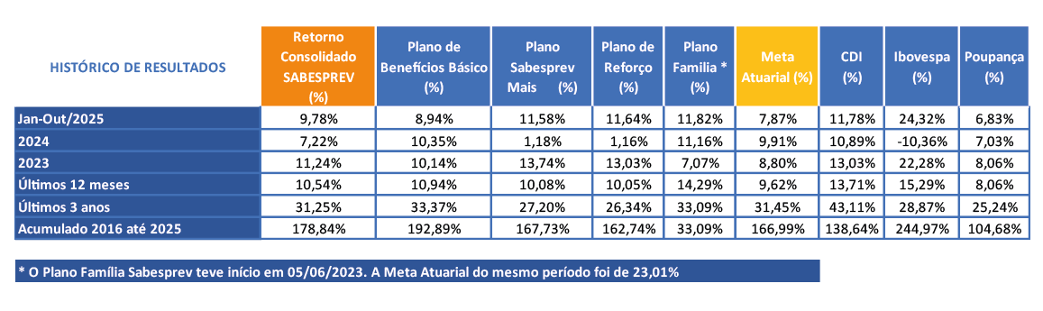 Reforçamos que a Sabesprev mantém seu compromisso permanente com a segurança, liquidez e responsabilidade na administração dos recursos previdenciários de seus participantes e assistidos.