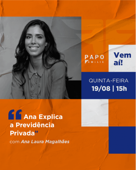 O Papo Família está agendado para o dia 19 de agosto, às 15 horas, com transmissão pelo facebook e instagram do Plano Família Previdência.