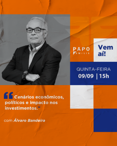 Anote em sua agenda. Papo Família com o economista Álvaro Bandeira, dia 09 de setembro (quinta-feira), às 15 horas, com transmissão pelo facebook e instagram do Plano Família Previdência.