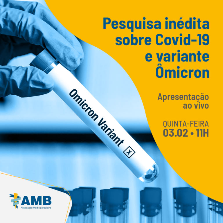 A Associação Médica Brasileira (AMB), em parceria com a Associação Paulista de Medicina (APM), realizou a pesquisa “Covid-19 e variante Ômicron: como e quanto médicos e assistência em saúde aos pacientes são impactados”. Assista ao vivo a divulgação dos resultados desta pesquisa inédita nesta quinta-feira, 3 de fevereiro, às 11h, pelo canal oficial da AMB no Youtube: https://www.youtube.com/c/AMBoficial