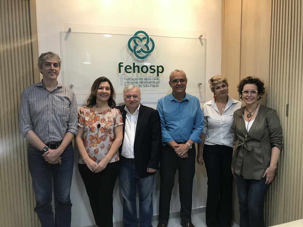 Marlon Franco (Analista Técnico do Instituto Ética Saúde), Gisele Figueiredo (Executiva Sênior de Compliance para América Latina), Sérgio Alcântara Madeira (Diretor Técnico do Instituto Ética Saúde), José Américo (Assessor de Qualidade e Relações Institucionais da Fehosp), Tatiana Viesseli (Coordenadora Programa Educasus da Fehosp) e Cibele Martins (Secretária Executiva do Instituto Ética Saúde)