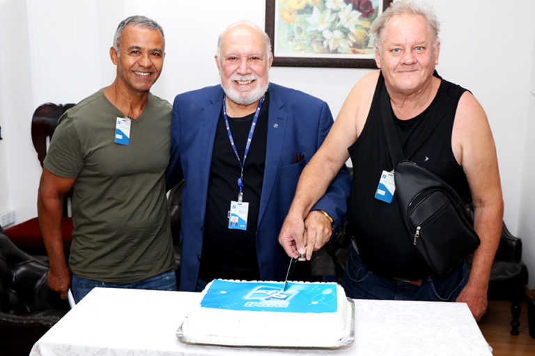Tradição nos aniversários da REFER, o bolo comemorativo foi cortado por Hugo José Netto da Silva e Heinz Hoeltgebaum Júnior, que estavam visitando a instituição no momento da celebração. Heinz iniciou sua carreira na RFFSA em 1984 como Agente Especial de Estação, encerrando suas atividades profissionais na CPTM, e é assistido da REFER desde dezembro de 2015. Ele destaca que a REFER “garante uma complementação digna” para sua vida. Já Hugo começou a trabalhar na CBTU também em 1984, atuando como ajudante de manutenção e concluiu sua carreira na Central. Desde março de 2024, é assistido da REFER e afirma que “a complementação oferecida é um excelente suporte financeiro”.