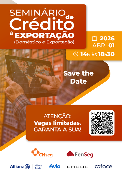A Federação Nacional de Seguros Gerais (FenSeg), em parceria com a Confederação Nacional das Seguradoras (CNseg), promove no próximo 1º de abril, das 14h às 18h30, o Seminário de Crédito à Exportação (doméstico e exportação). O encontro reunirá especialistas do mercado segurador, do setor produtivo e de instituições financeiras para discutir como o seguro de crédito pode fortalecer as transações comerciais e apoiar a expansão de negócios no Brasil e no exterior.