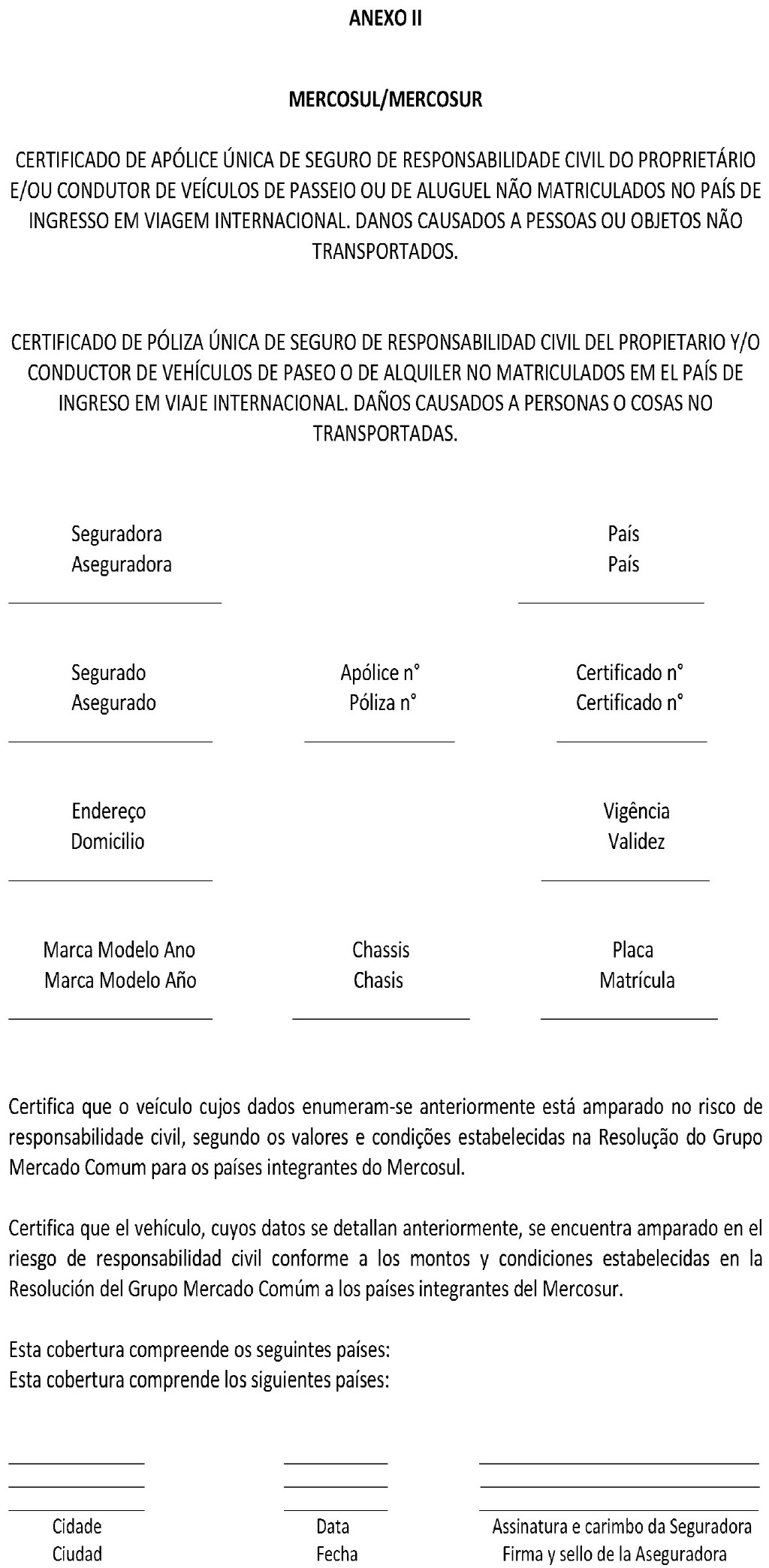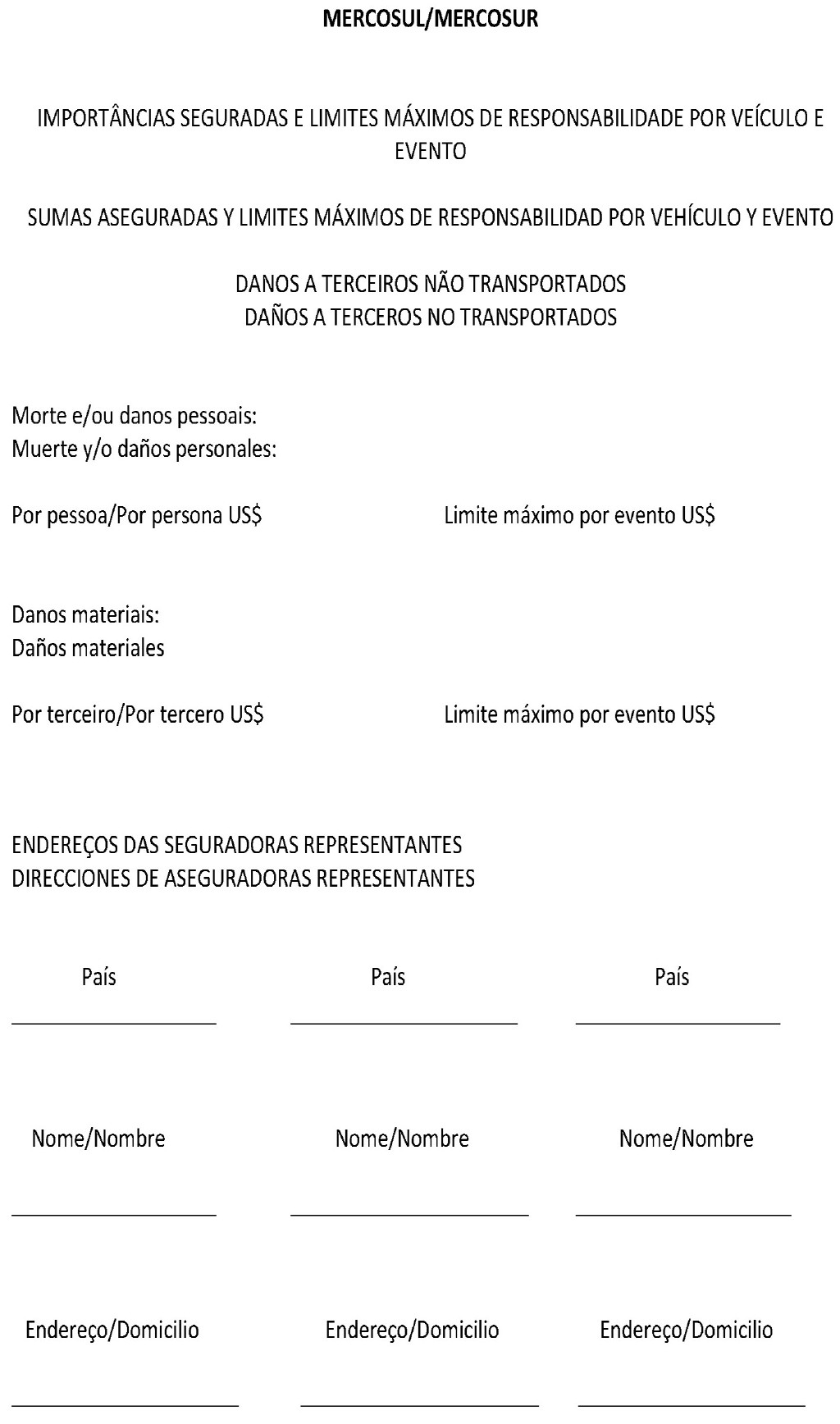 As disposições desta apólice se aplicam dentro do âmbito dos países integrantes do MERCOSUL, e somente a eventos ocorridos fora do território nacional do país de matrícula do veículo.