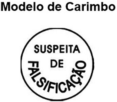 a) Carimbo com expressão "Suspeita de Falsificação" a ser utilizado pelas instituições financeiras: