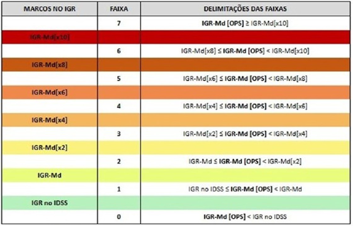 I - Faixa 0: abrange valores de IGR médio inferiores ao valor de IGR vigente que corresponde ao patamar máximo para que as operadoras pontuem no indicador "Índice Geral de Reclamação Anual - IGR Anual" do Índice de Desempenho da Saúde Suplementar - IDSS);